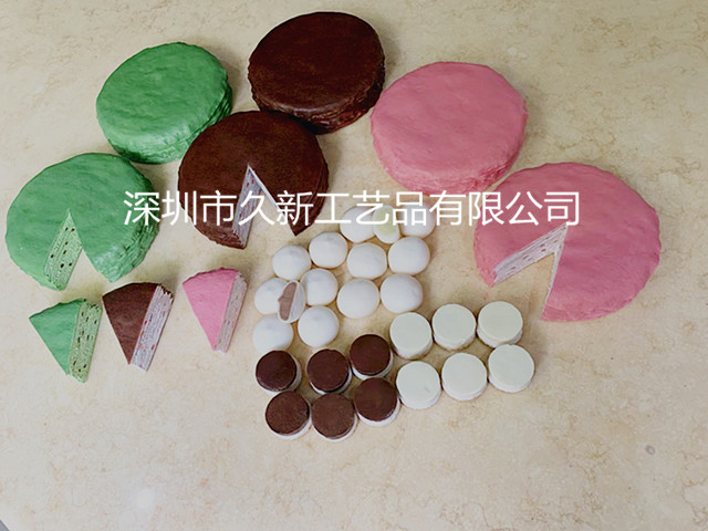 恩喜村客戶研發的新款蛋糕食品模型打樣完成交貨。深圳久新工藝量身定制各類仿真食物模(mo)型,根據您的食物樣品或是(shi)您要的空間構想都能模型(xing)的形態明檔展(zhan)示出來