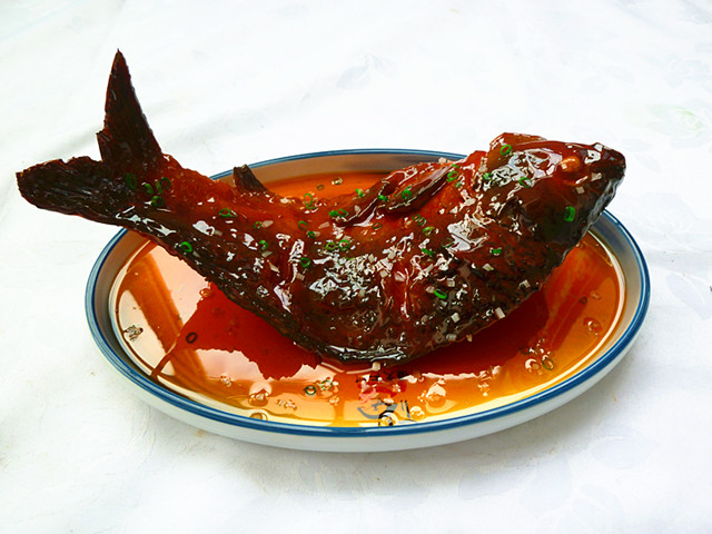 7、若有(you)五香(xiang)粉等粉類調料,則需炸(zha)魚(yu)煮得(de)九成熟后放入。