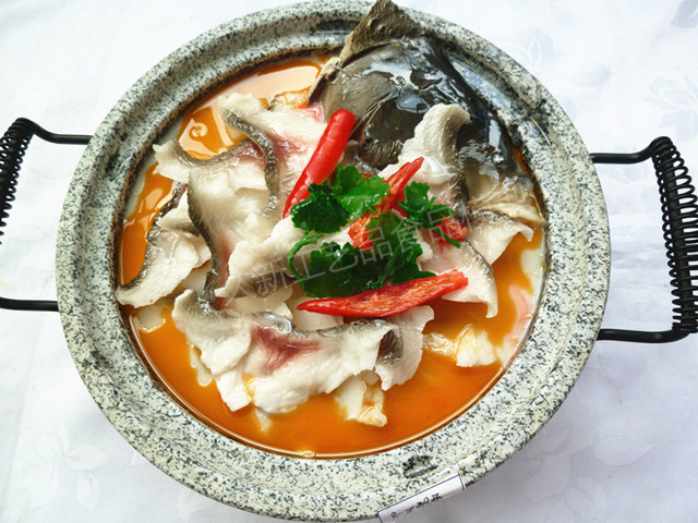 石鍋魚火鍋型看似很高大上的,一口鍋的直徑一般在30CM左右,好大的份量,這是吸引人的一個重點,加上石鍋材質傳熱慢,相當于是老火細煮的,里面的食物肉質特別的細嫩味道鮮美,常言說,河鮮不過魚。用這種石鍋煮出來的與鐵鍋或是不銹鋼鍋煮出來的味道有著天壤之別,所以,成就了這份美食的最大特色,也成了一方名菜,再以模型的形式明檔展示,加以促銷,張顯了你的實力與個性,當然,你的收入也是翻幾翻!
