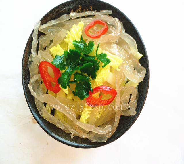 仿真菜: 涼抖蜇皮。仿真菜涼拌(ban)蜇皮,菜名,是(shi)以蜇皮為主料,配以蔥、姜、精鹽等輔料制作而成,味道香美、老少皆宜,深受大眾的喜愛與推崇,深圳久新制作仿真菜,美倫美煥,看到這晶瑩剔透的條條蜇皮仿真菜就是最具實力的真實寫照!