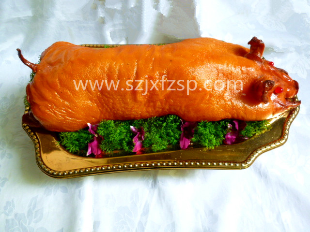 上面這一盤鴻運當頭的烤乳豬食品模型,是(shi)經過幾十道(dao)(dao)工序精工細作(zuo)出來(lai)的(de)(de)高檔(dang)假(jia)菜(cai)模型(xing),也是(shi)一道(dao)(dao)國晏(yan)名菜(cai),光這一盤就(jiu)價值幾大千。外皮焦黃酥脆,里(li)面的(de)(de)肉(rou)肥而不