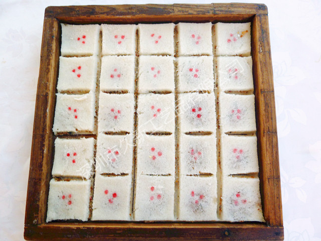 松糕是浙江省溫州市的一道特色傳統名點,該小吃松軟香甜,美味可口,聞名中華。其以粳米為主要原料制成生坯,經蒸制而成的糕類制品。亦可用糯米粉做,將糖粉和入糯粉中,棲入松糕格內。到一半時,放入花生米碎與糖粉。然后再棲滿糯粉,蒸熟,口感以甜份為主