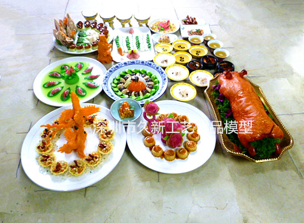 客戶(hu)定制的酒(jiu)店仿真食品模(mo)型已完成交貨(huo)。食物模(mo)型——深圳久新工藝,專業定制各(ge)類仿真菜(cai)模(mo)型,選材精良(liang),做工精致深得(de)新老客戶(hu)的支持。在哪里可以吃到國(guo)(guo)晏級的高檔美食呢?看(kan)看(kan)我們這一桌(zhuo),就可以給您非常高大上的視覺(jue)盛晏國(guo)(guo)晏,滿漢精選 到奉:延壽參湯,貢酒滿杯 四喜頭盤:各式燒臘鹵味 三熱葷:金銀鮑脯,玉柱藏珍,雀舌金巢 鴻運當頭、鹿羓蜆鴨,碧海魚皇,一品天香,羅漢上素 乾隆寶飯 甜品:冰花雪蛤 甜點:萬事如意,步步高升,羊城美果。讓您吃到美不可言,只可惜,秀色不可餐!我們只是以假菜模型的形態明檔展示的