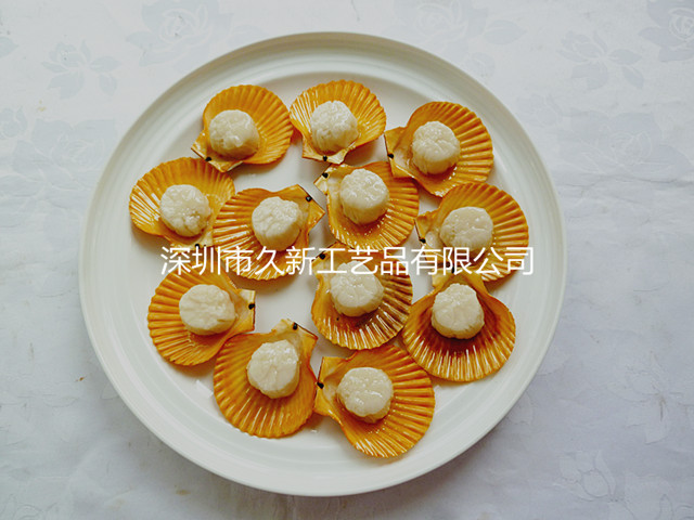 海鮮食品模型: 扇貝食品模型,肥大的瑤柱肉質鮮美,我們有資深的食(shi)品模型和仿真菜技師和優(you)質的服(fu)務!
