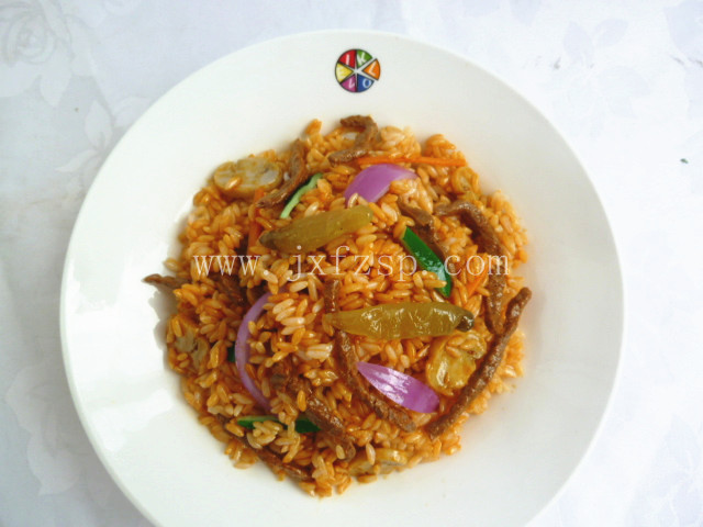 食品模型: 牛肉秘炒飯食品模型。粒粒黃金米飯,滴滴濃香,超大分量足以刺激您的眼球。