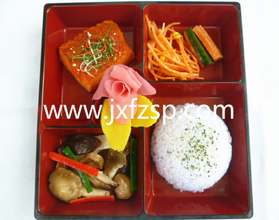 仿真菜: 三文魚料理便當。絲絲入扣的造型大大的強烈刺激了消費者的欲望,精美的仿真度達了以假亂真的效果