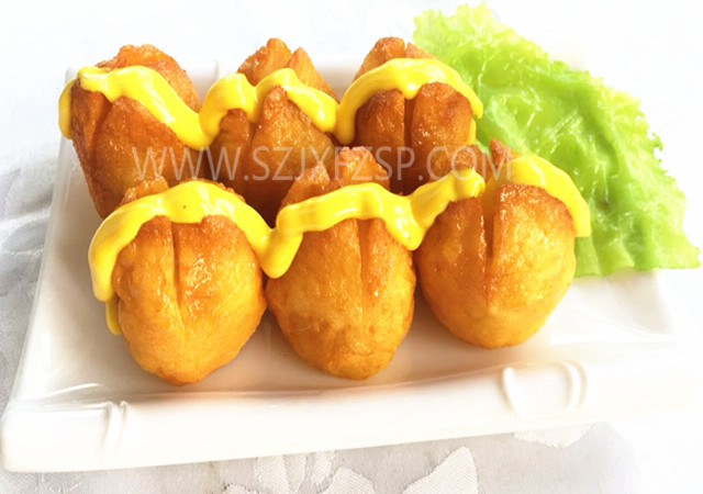 樣品菜 :蜜汁花枝丸樣品菜。樣品菜又名立體菜單,明檔展的一份樣品菜模,經久耐用,永久如新,是你的商業合作伙伴!