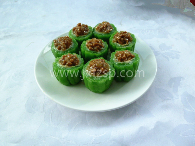 食物仿真 釀苦瓜(gua)模(mo)型 質感(gan)逼真的視覺效(xiao)果 強有力(li)的促銷工具 持久(jiu)耐用的優質選材,深圳久新工藝仿真食品模型定制,